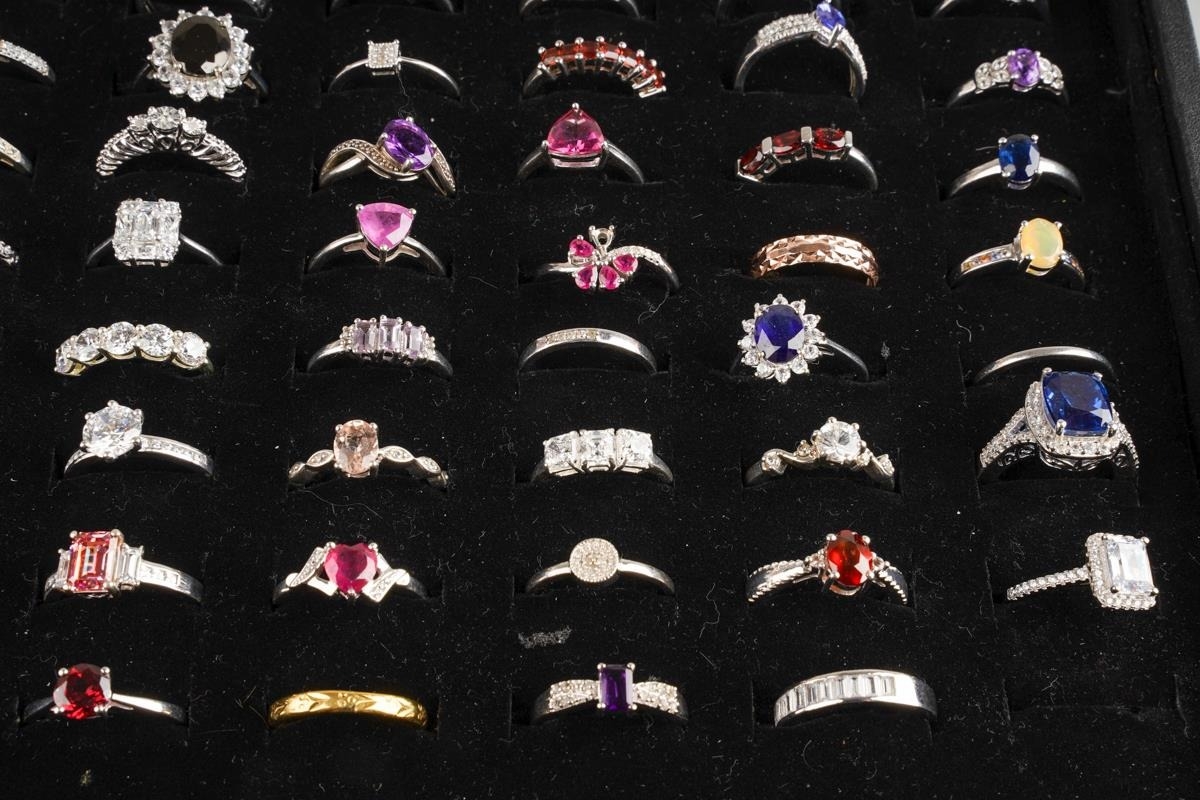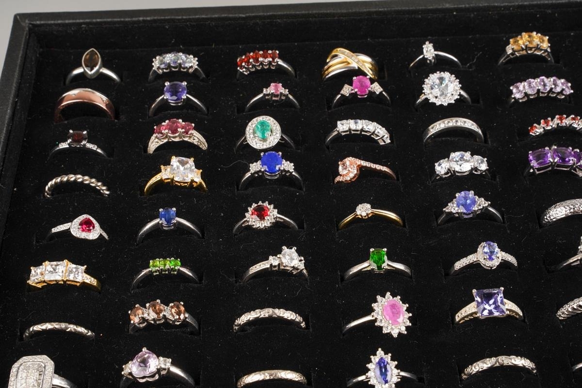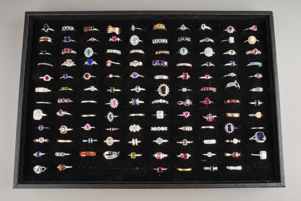 Large collection of dress rings, various sizes and metals - including stainless steel, set with CZ and glass, approx. 116 in total