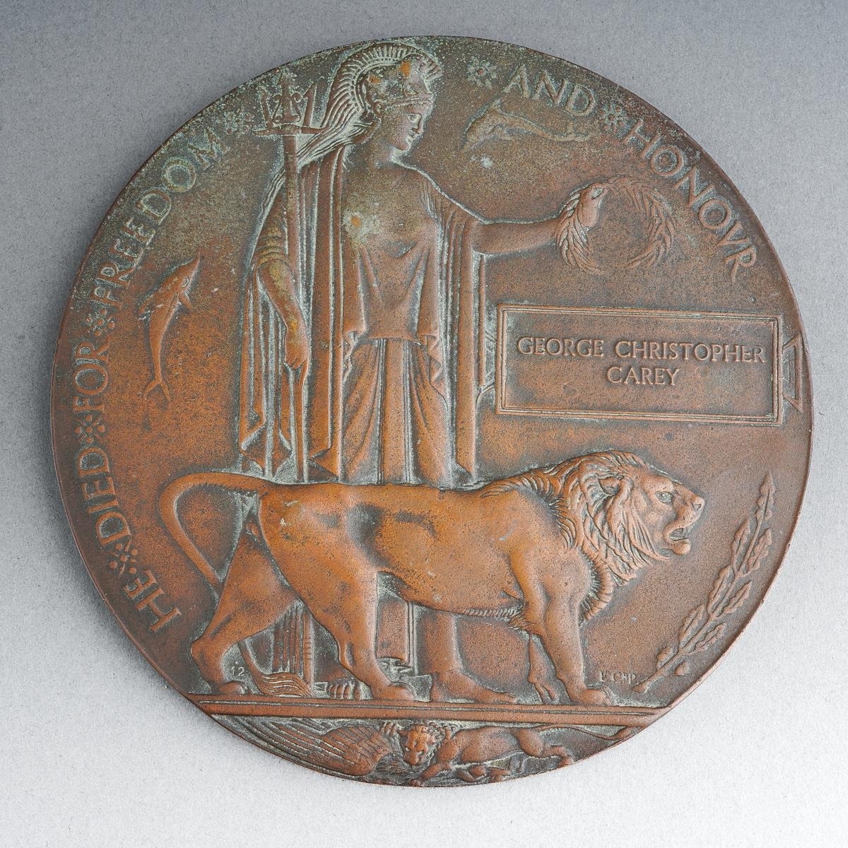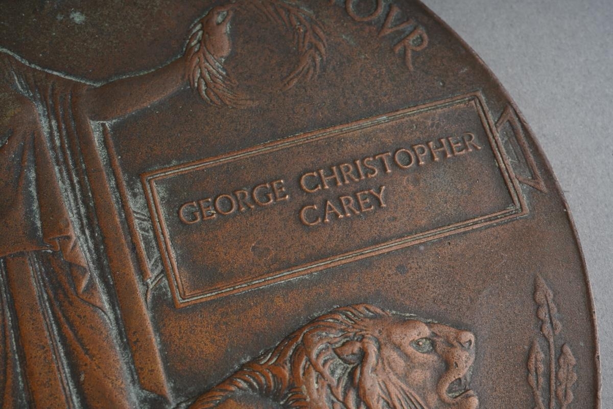 WWI bronze Death Plaque / Penny awarded to George Christopher Carey [1]