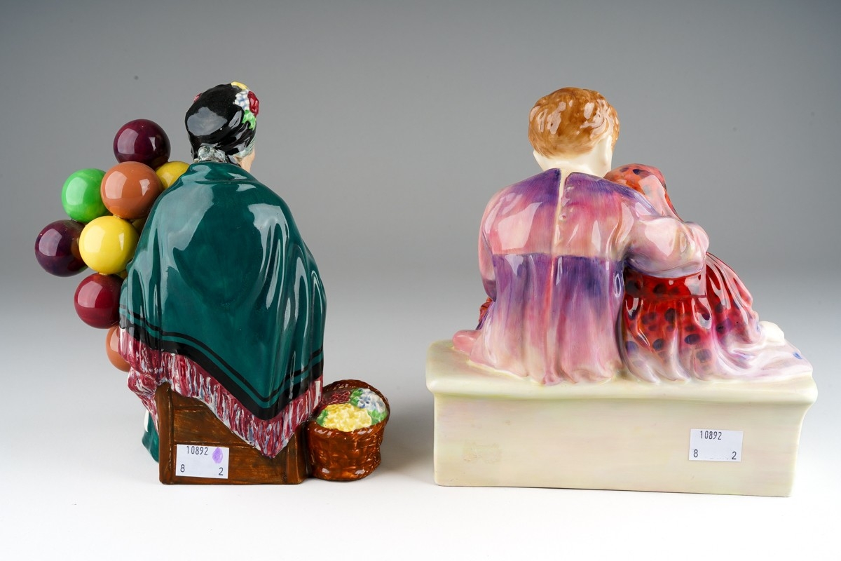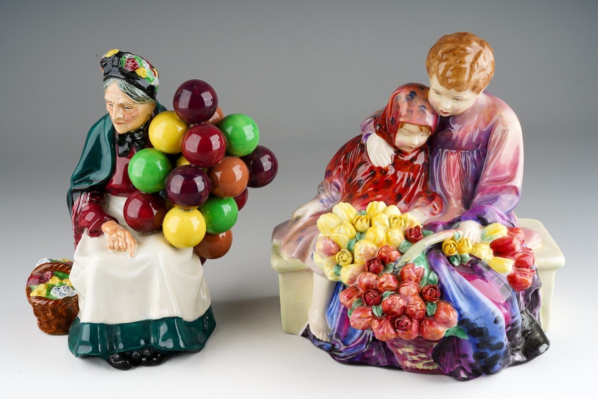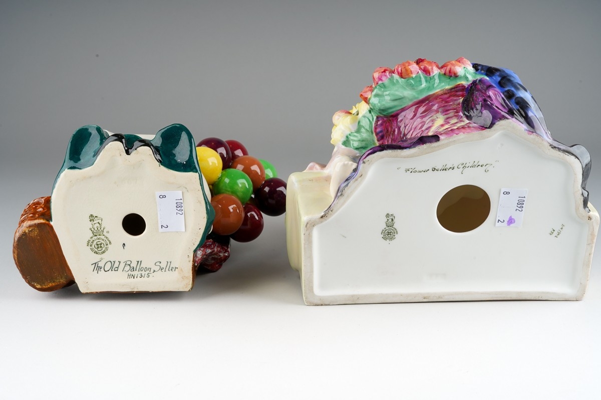 A Royal Doulton model "Flower Sellers's Children" HN1342, factory stamp, signed FJH together with Royal Doulton "The Old Balloon Seller" HN1315 [2]