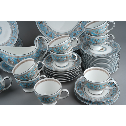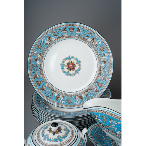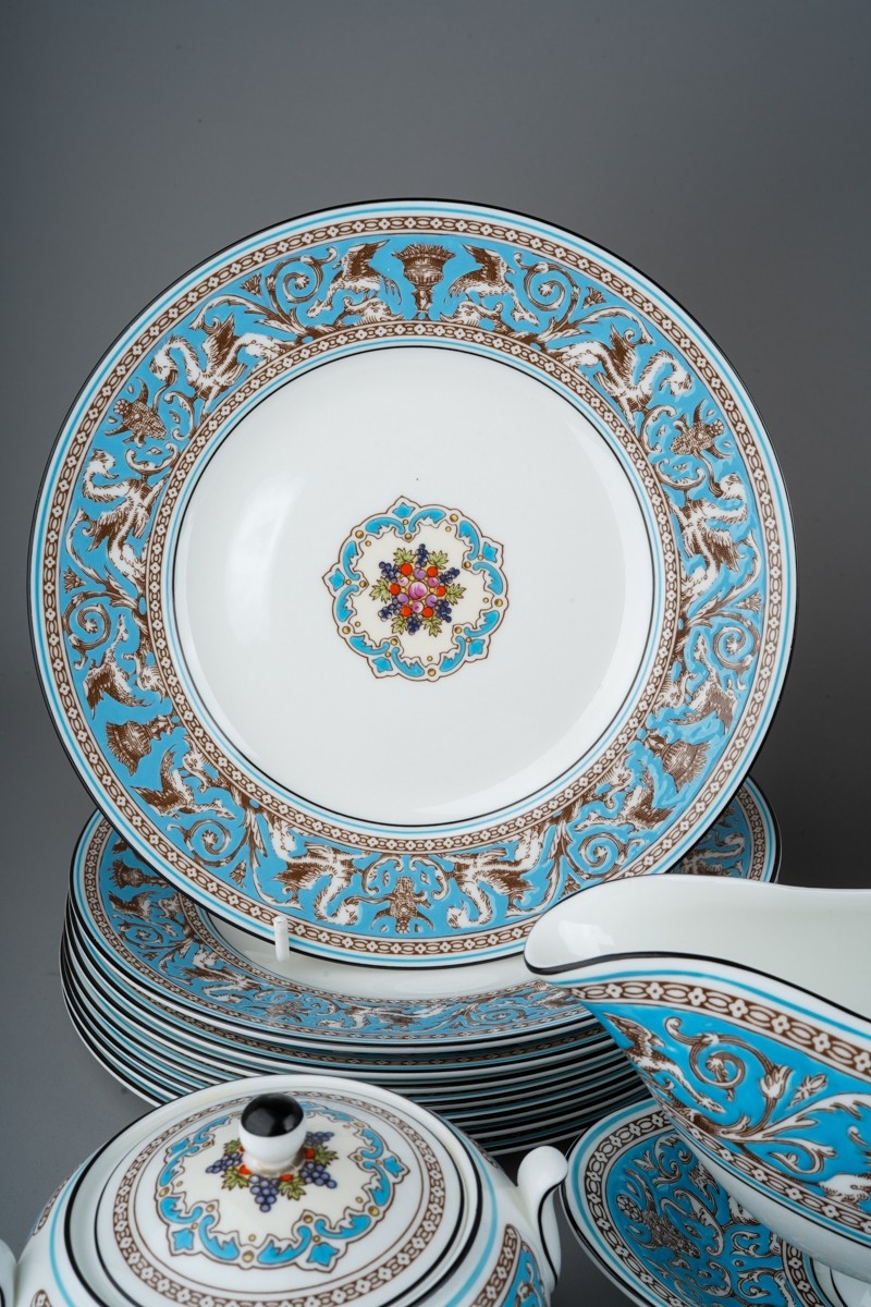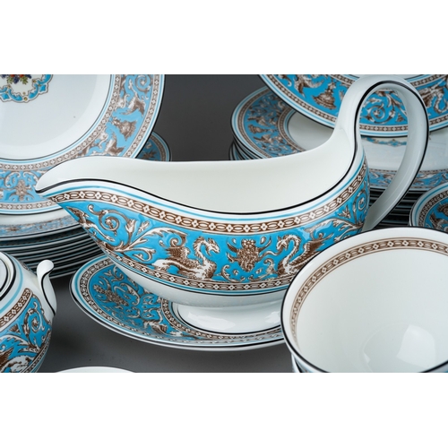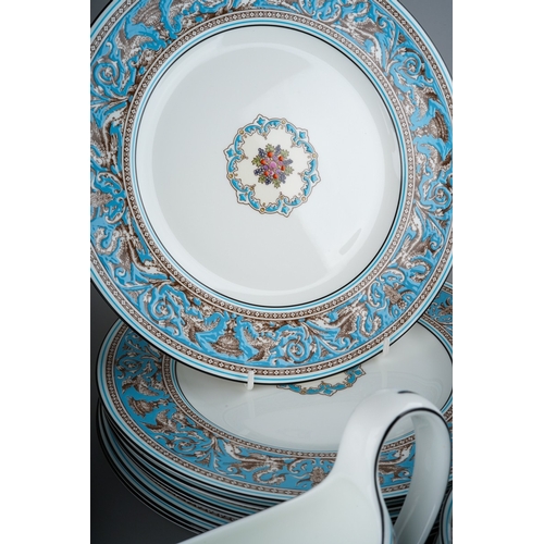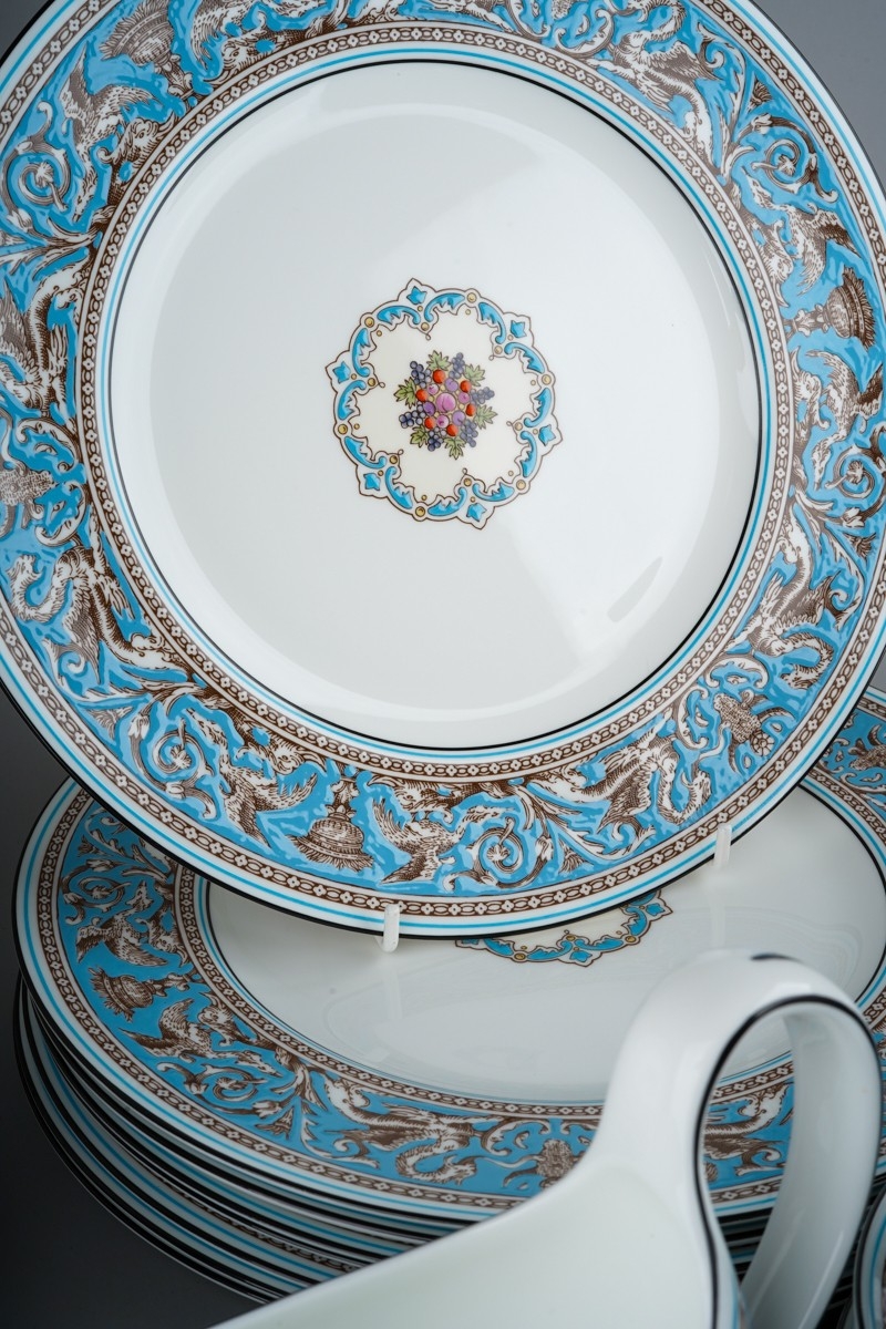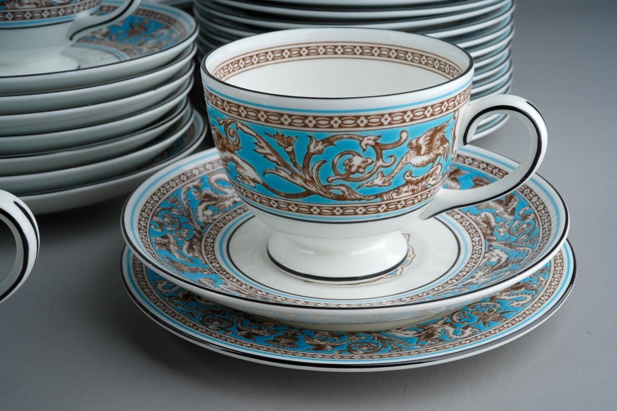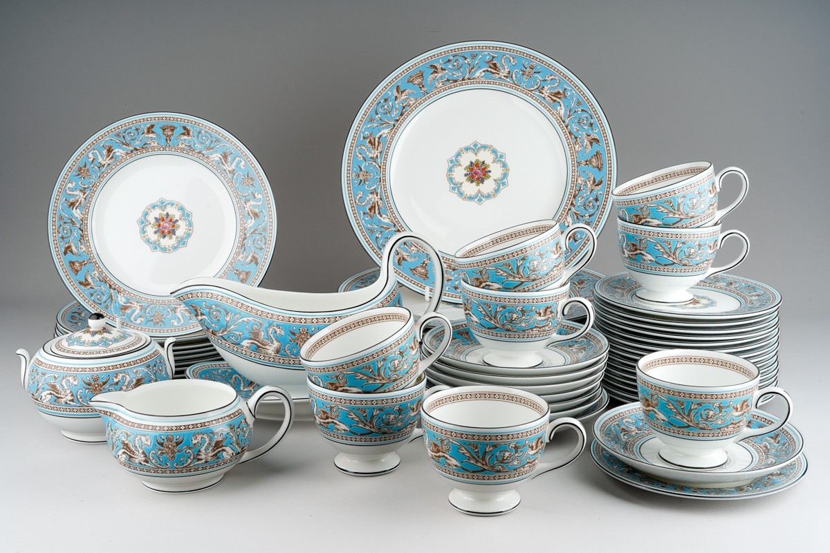 A Wedgewood Florentine eight place part dinner service including dinner plates, 8 lunch plates, 8 cups, 8 saucers, 16 side plates, gravy boat, sugar bowl (1 box)