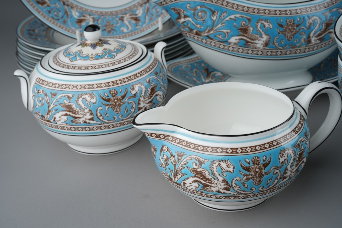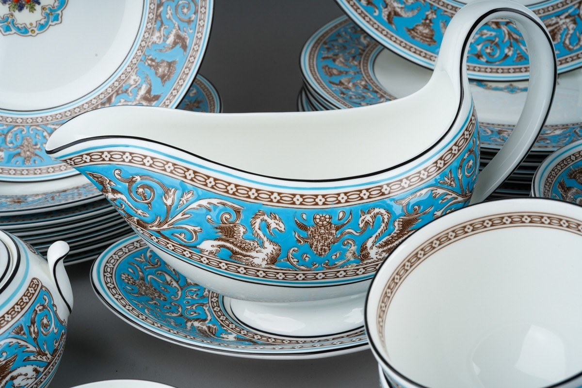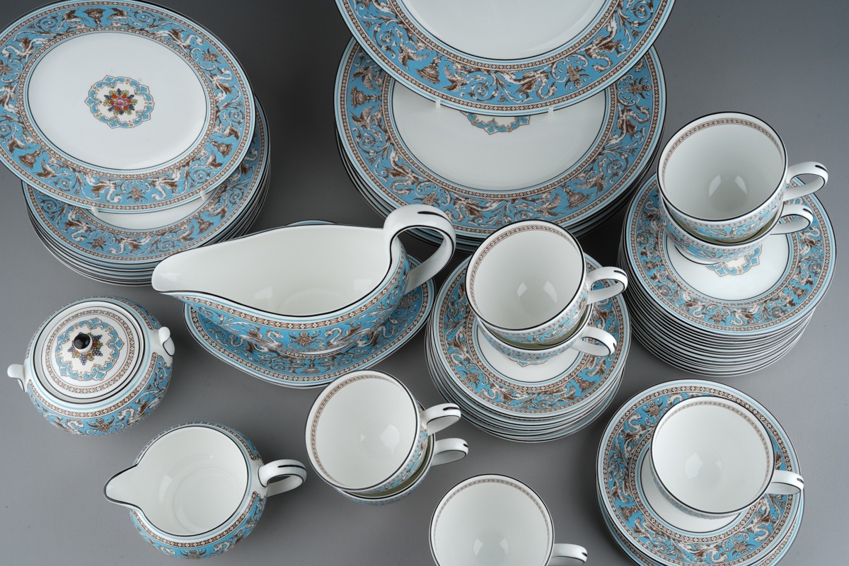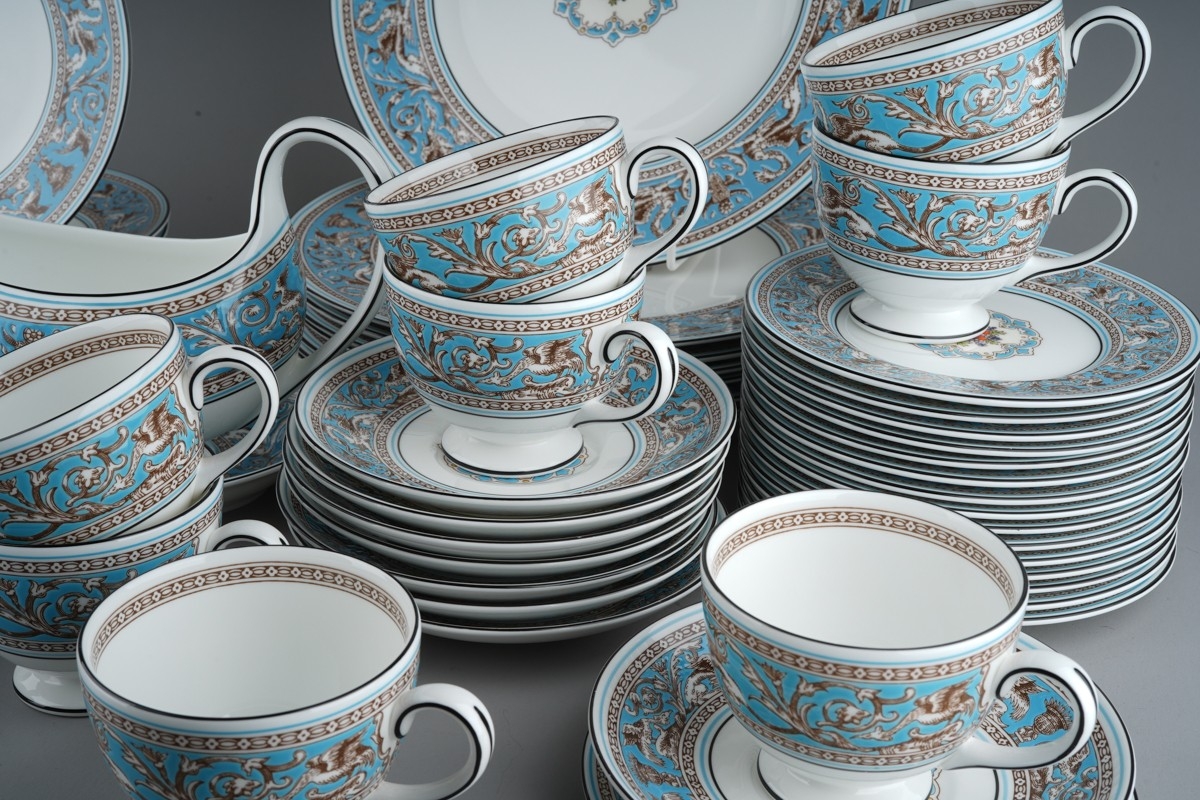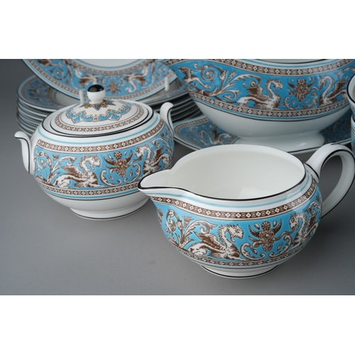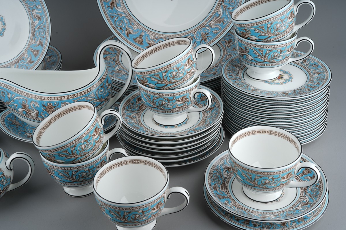 A Wedgewood Florentine eight place part dinner service including dinner plates, 8 lunch plates, 8 cups, 8 saucers, 16 side plates, gravy boat, sugar bowl (1 box)