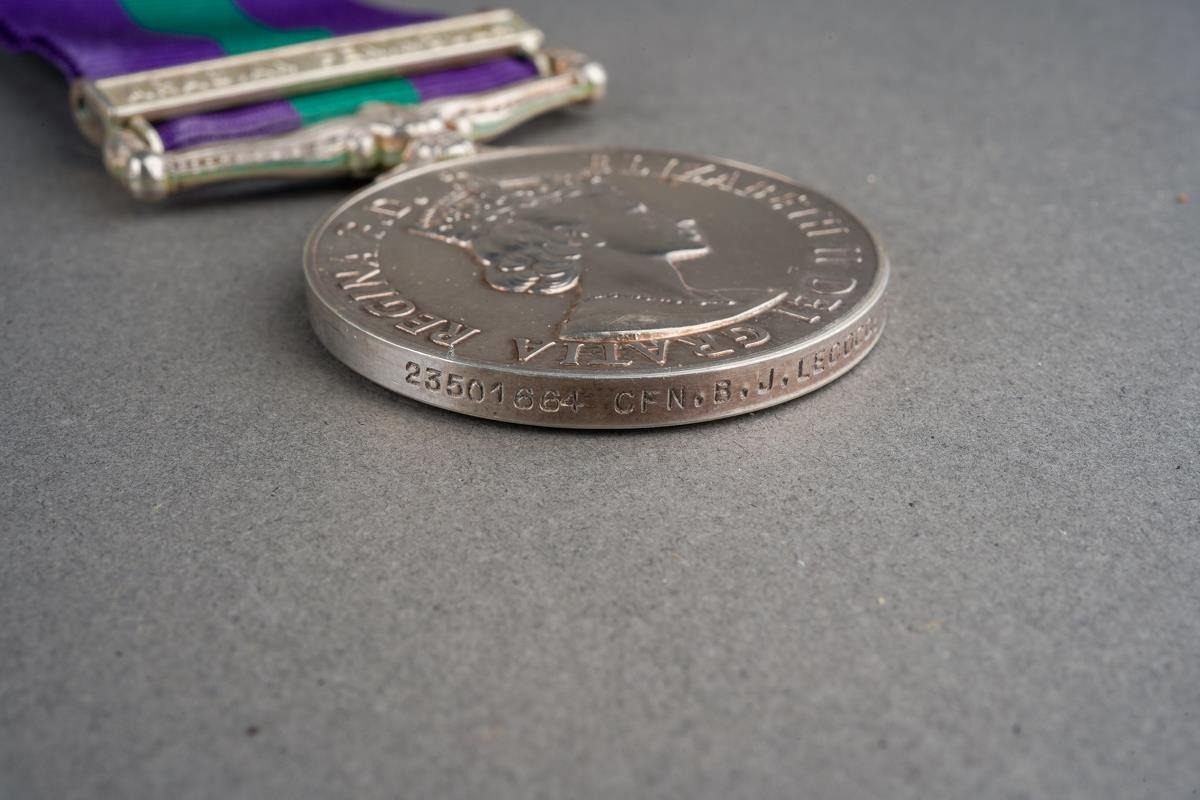 ERII General Service Medal with Arabian Peninsula Clasp to 23501664 Cfn. BJ Lecoca, REME. Complete with ribbon.