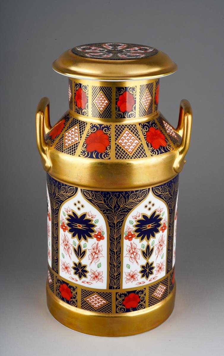Royal Crown Derby Old Imari 1128 pattern milk churn, first quality. Overall height 25.5cm.