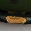 Red vase has underglaze chips to underside rim, the faience vase has a large chip to footrim and restoration around upper areas