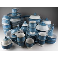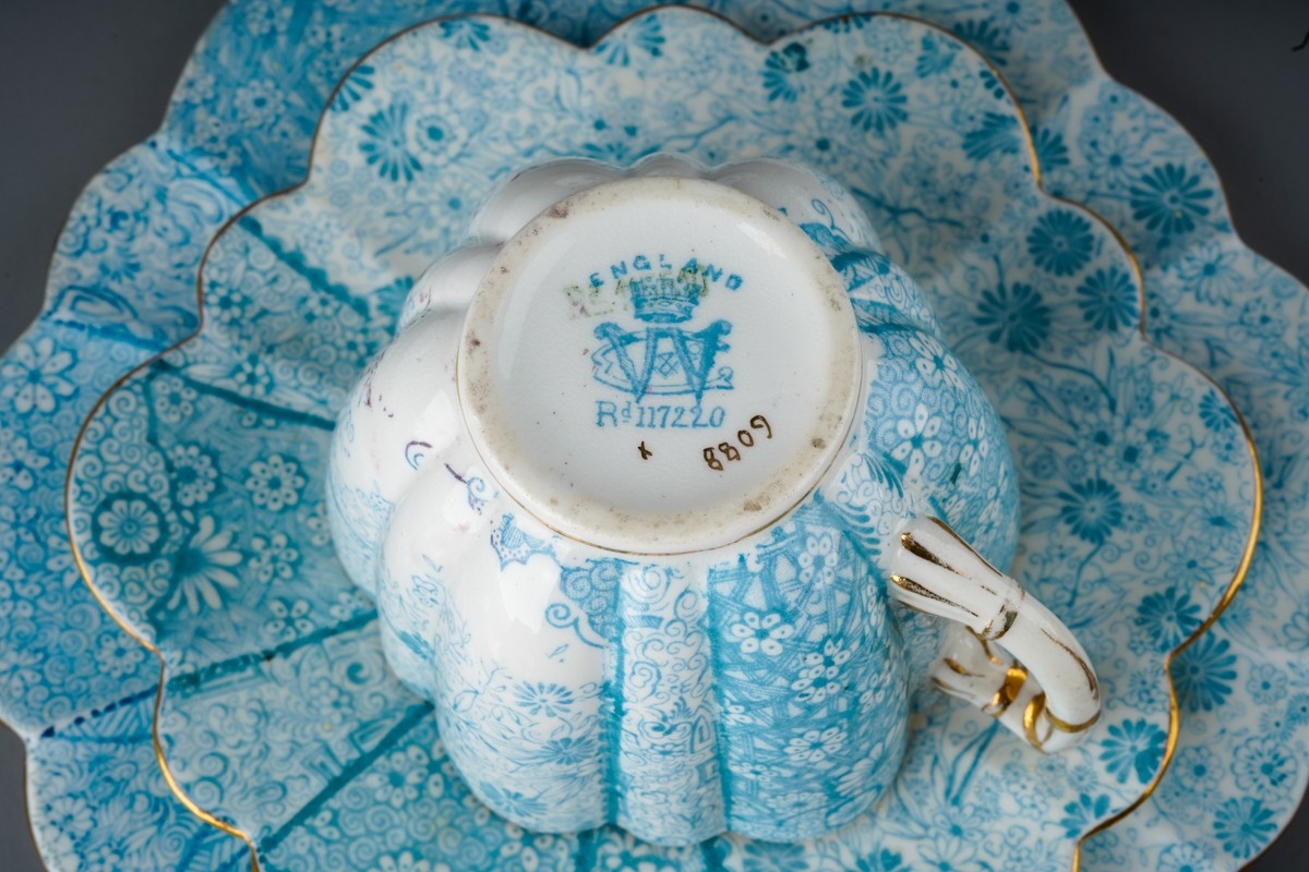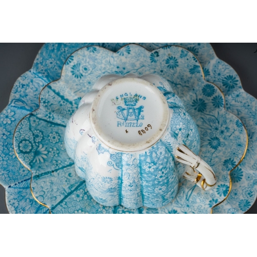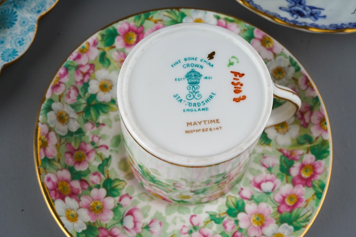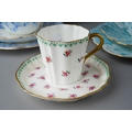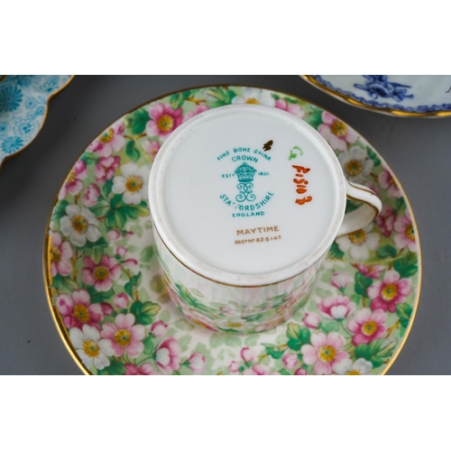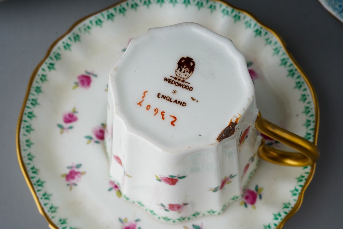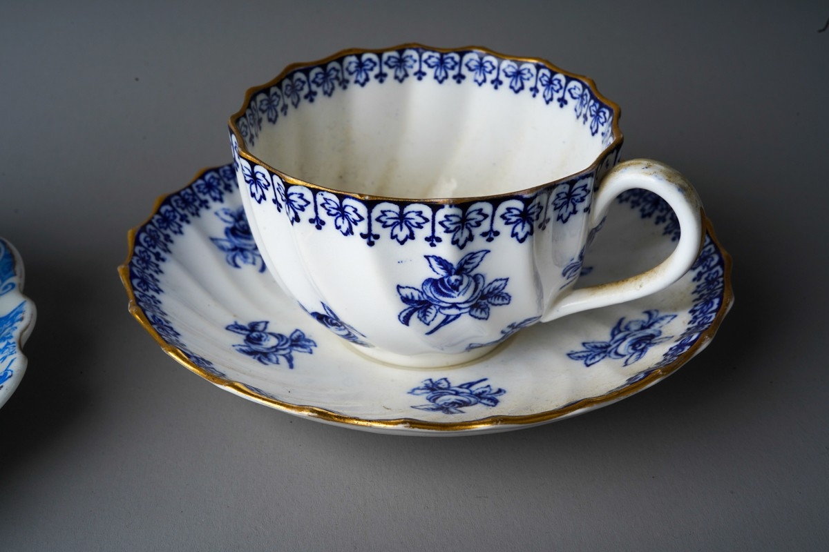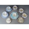 A collection of late Victorian and early 20th century tea cups, coffee cans and saucers, including a Wileman & Co trio in pale blue, a Copeland fluted rose bud coffee can and saucer, etc (20)