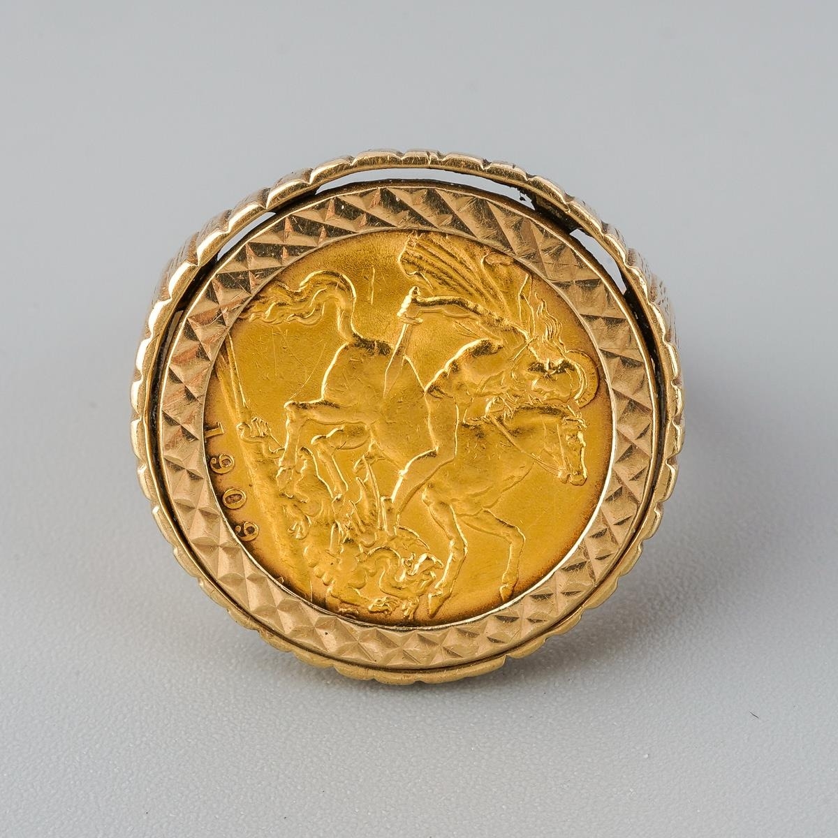 1909 half sovereign ring mounted in 9 ct gold, gross weight approx. 8.9g