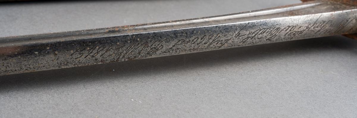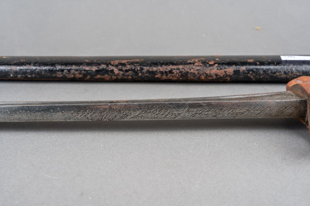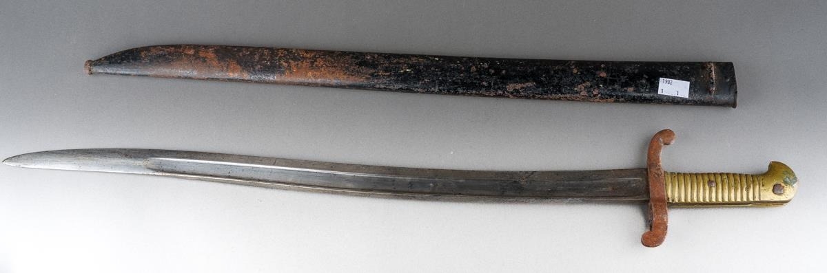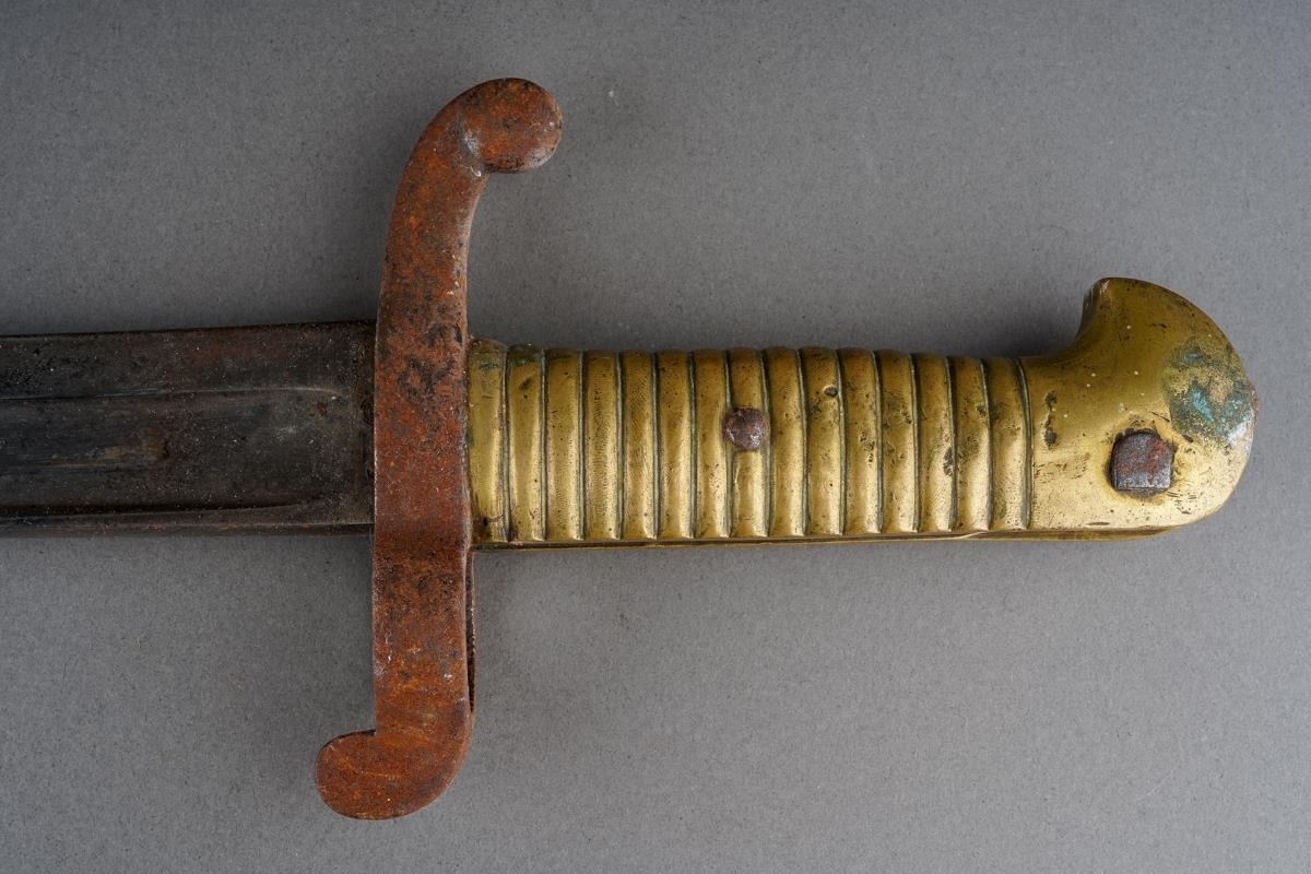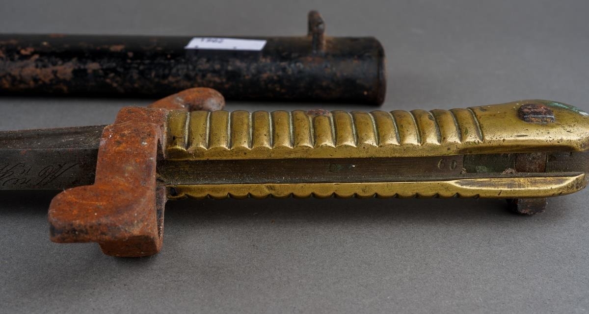 A French 1842 pattern bayonet with steel hilt, the blade engraved and dated 1860., approx 69.5cm [1]