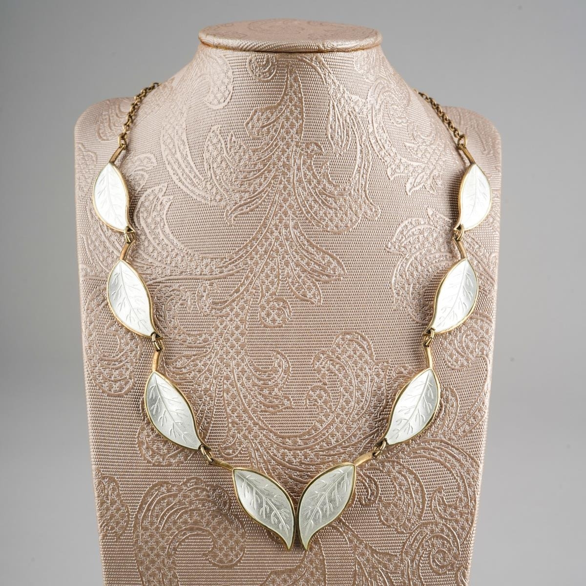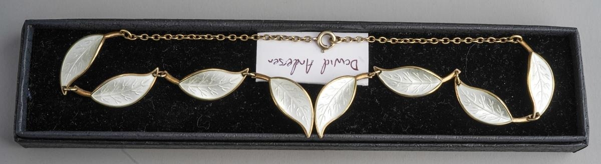 David Andersen white Enamel leaf necklace sterling silver designed Willie Windass.