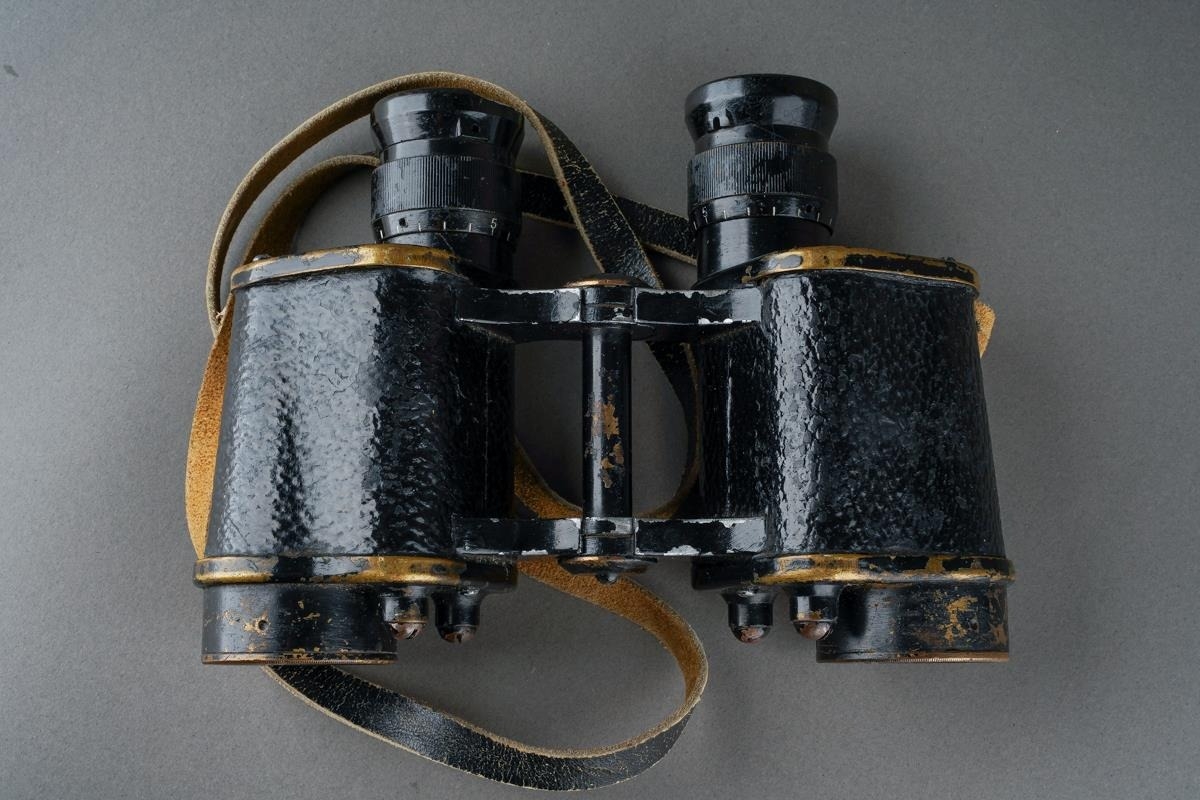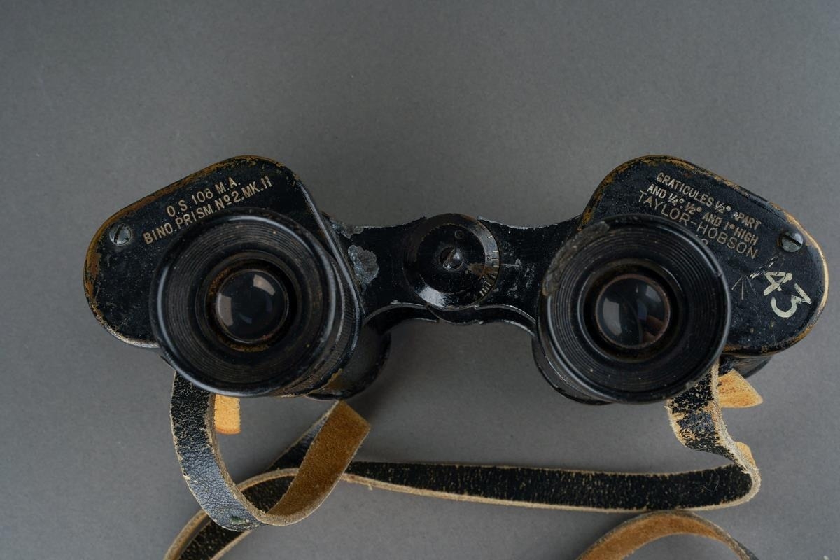 A pair of WWII Taylor-Hobson 1942 military binoculars, serial number 289636 with leather strap [1]