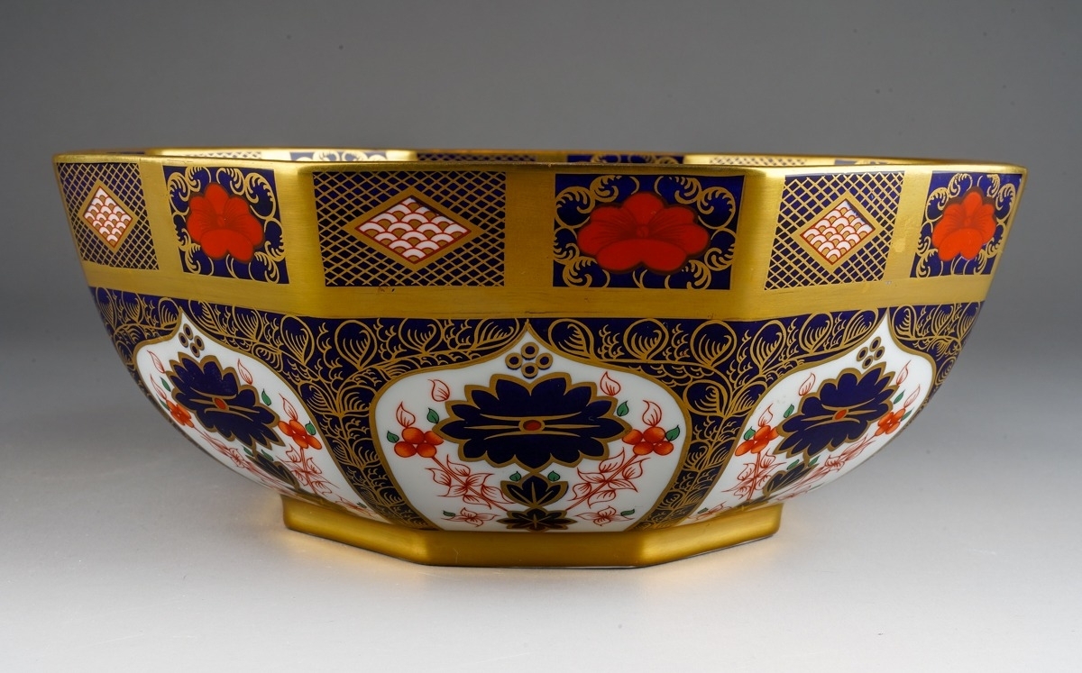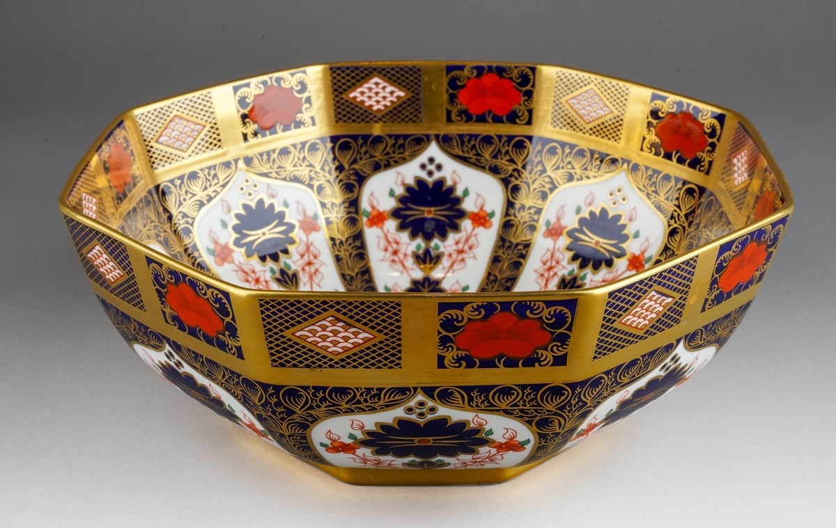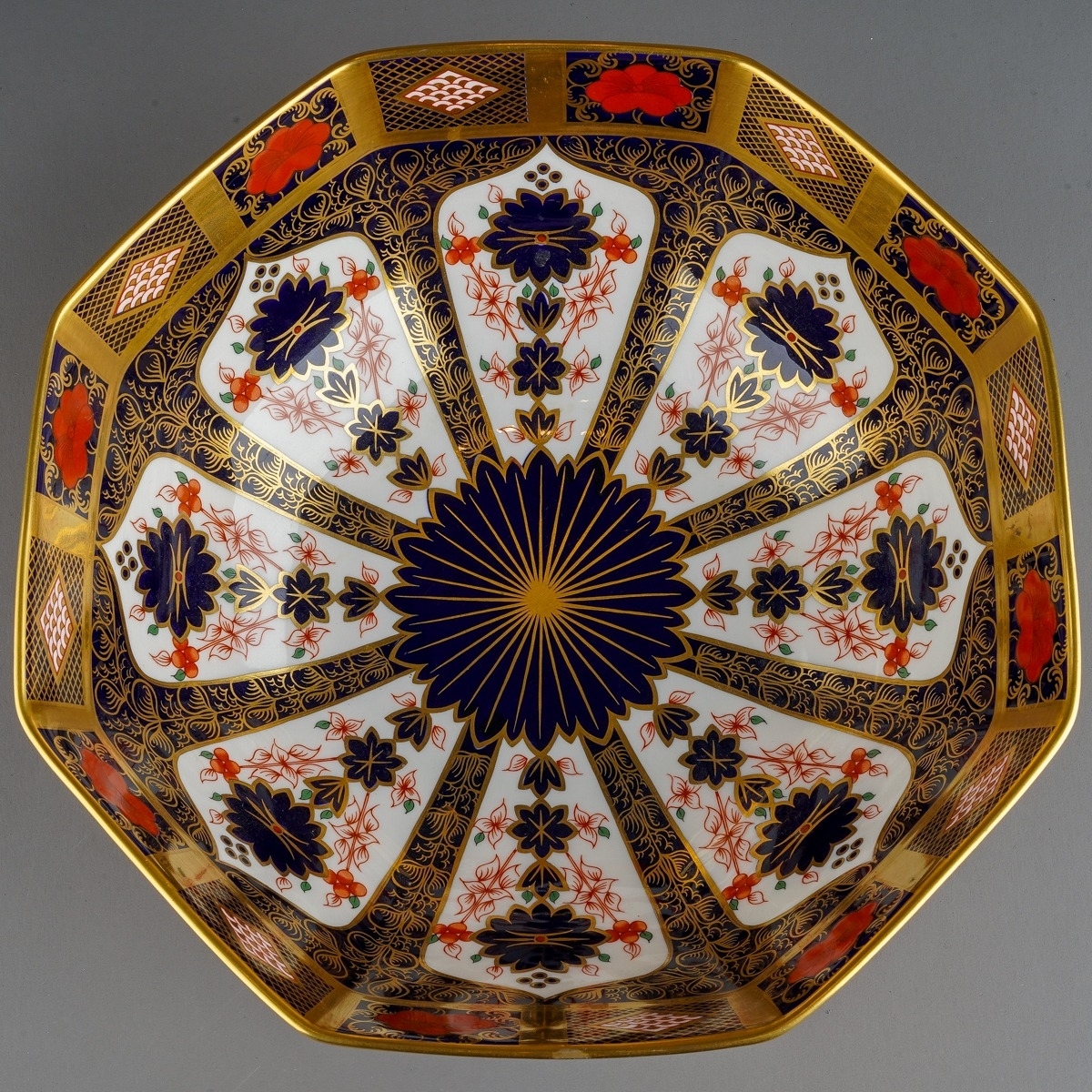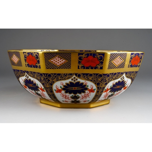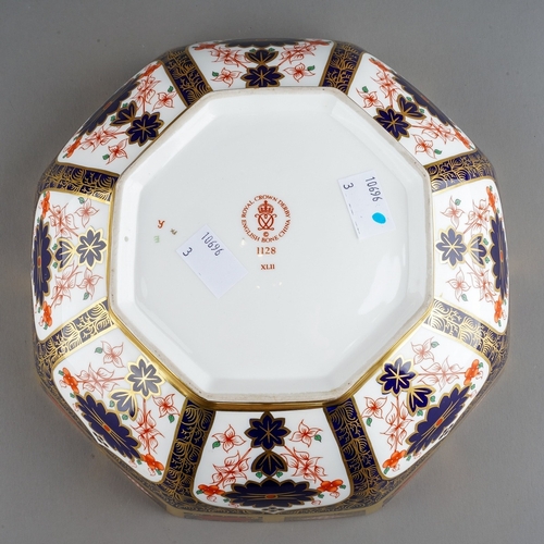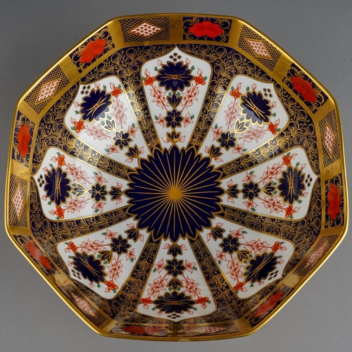 A Royal Crown Derby Imari 1128 octagonal bowl., red backstamp, date XLII., approx 24cm wide