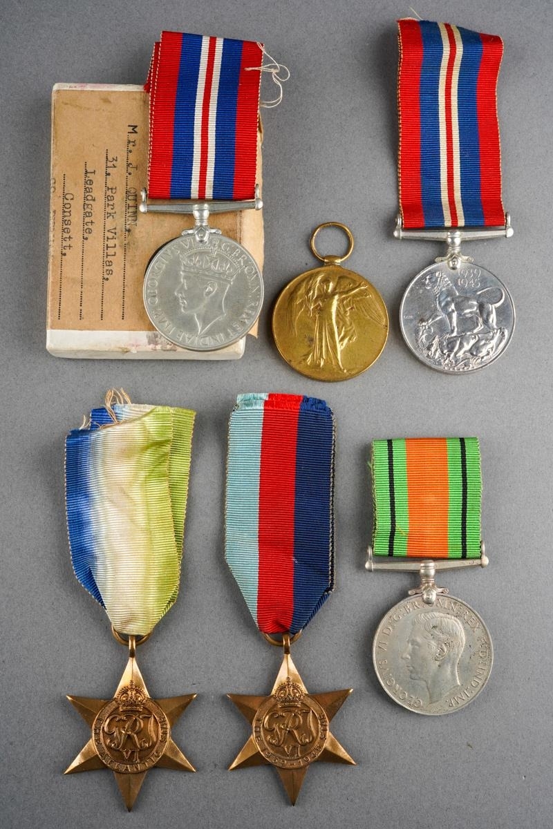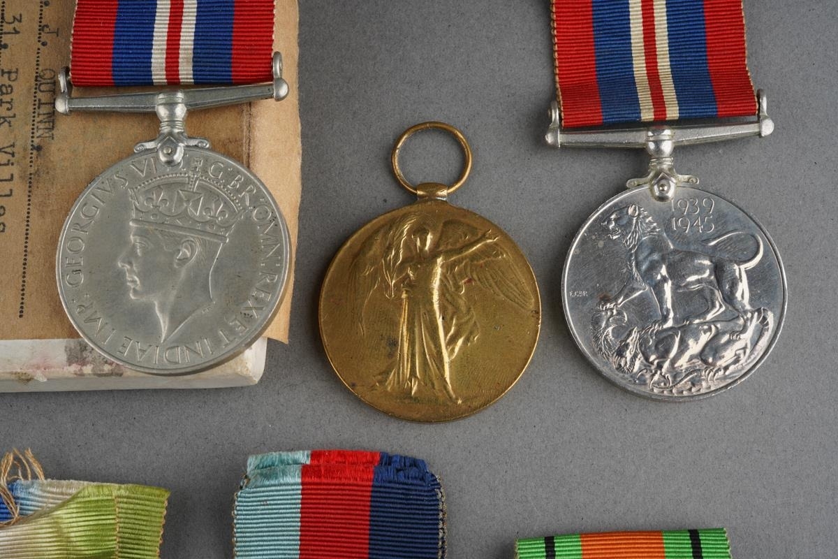 Boxed Defence and War Medal, to J Quinn of the RASC