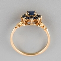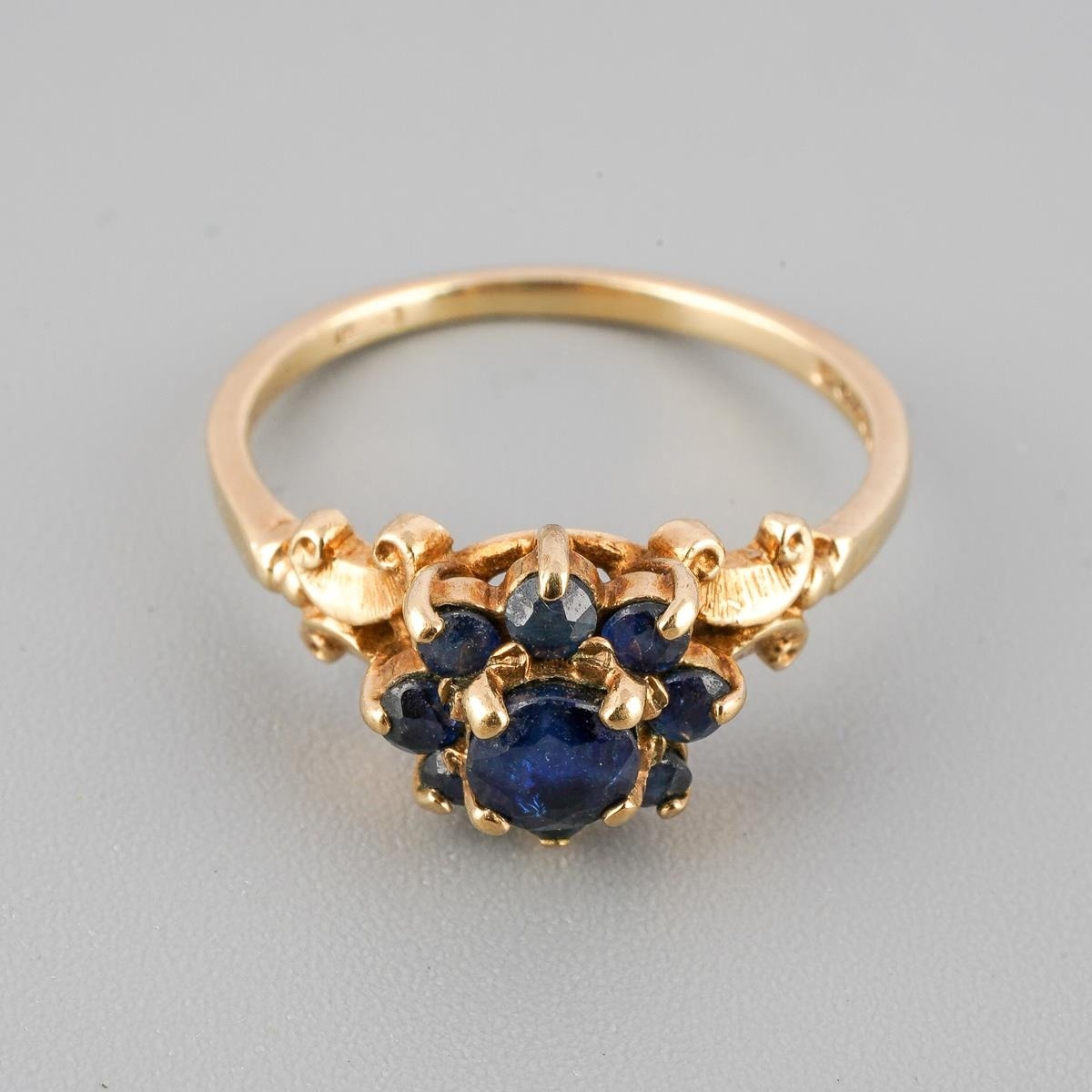 A 9ct gold sapphire cluster ring. Approx ring size I, hallmarked 9ct gold, approx gross weight 1.9 grams.