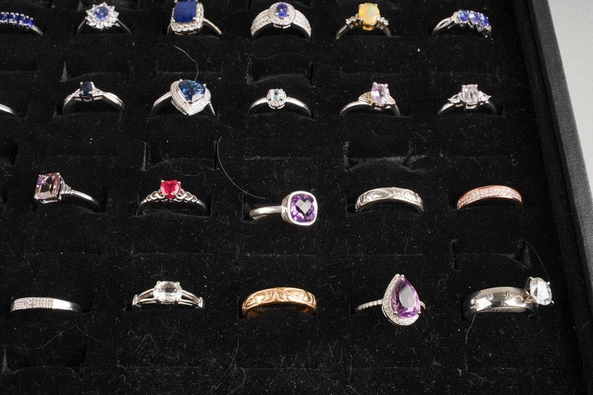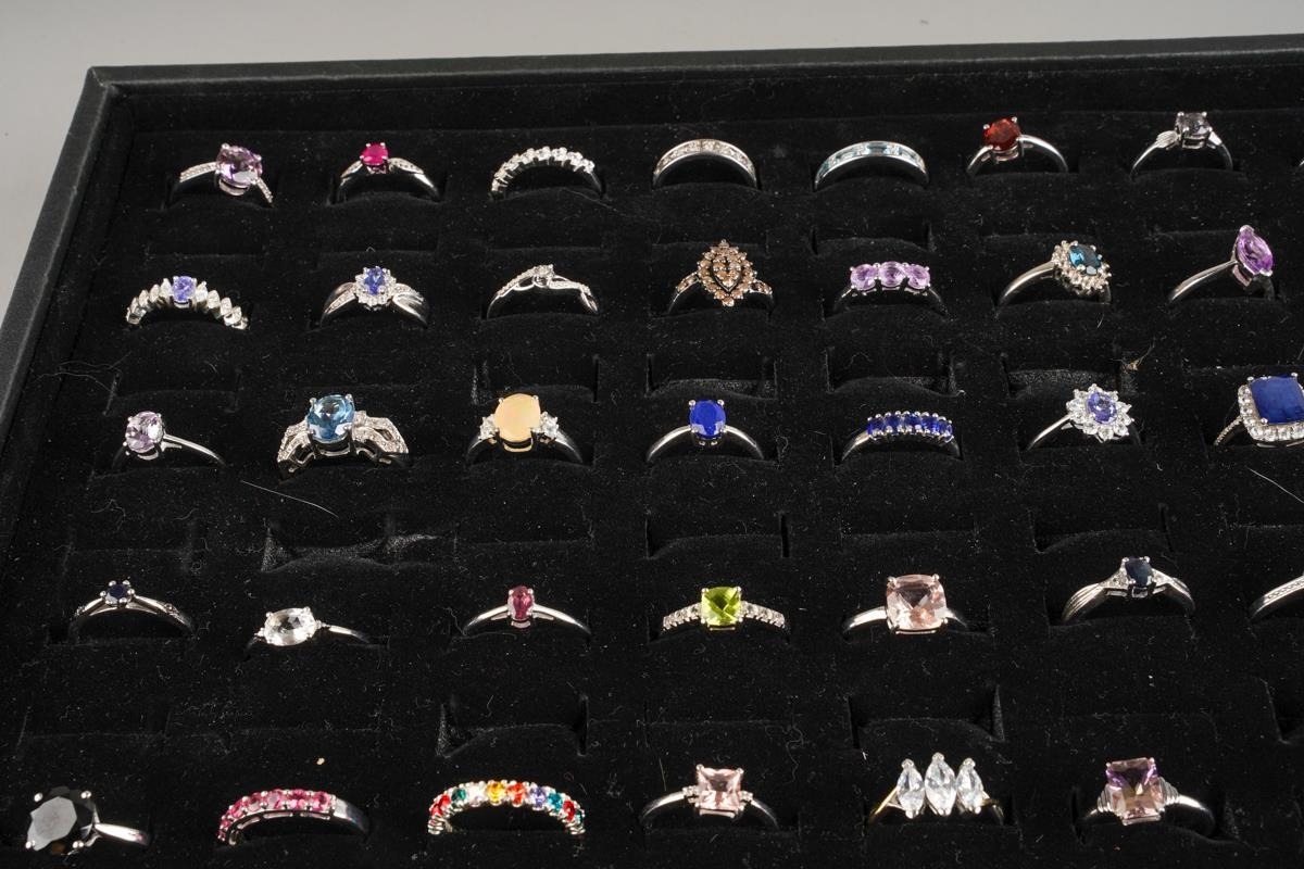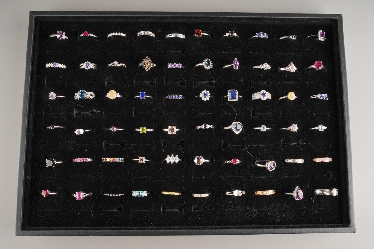 Large collection of dress rings, various sizes and metals - including stainless steel, set with CZ and glass, approx. 60 in total
