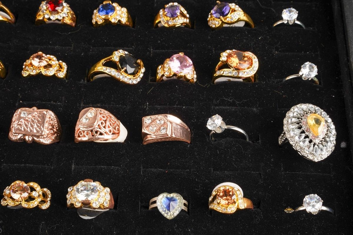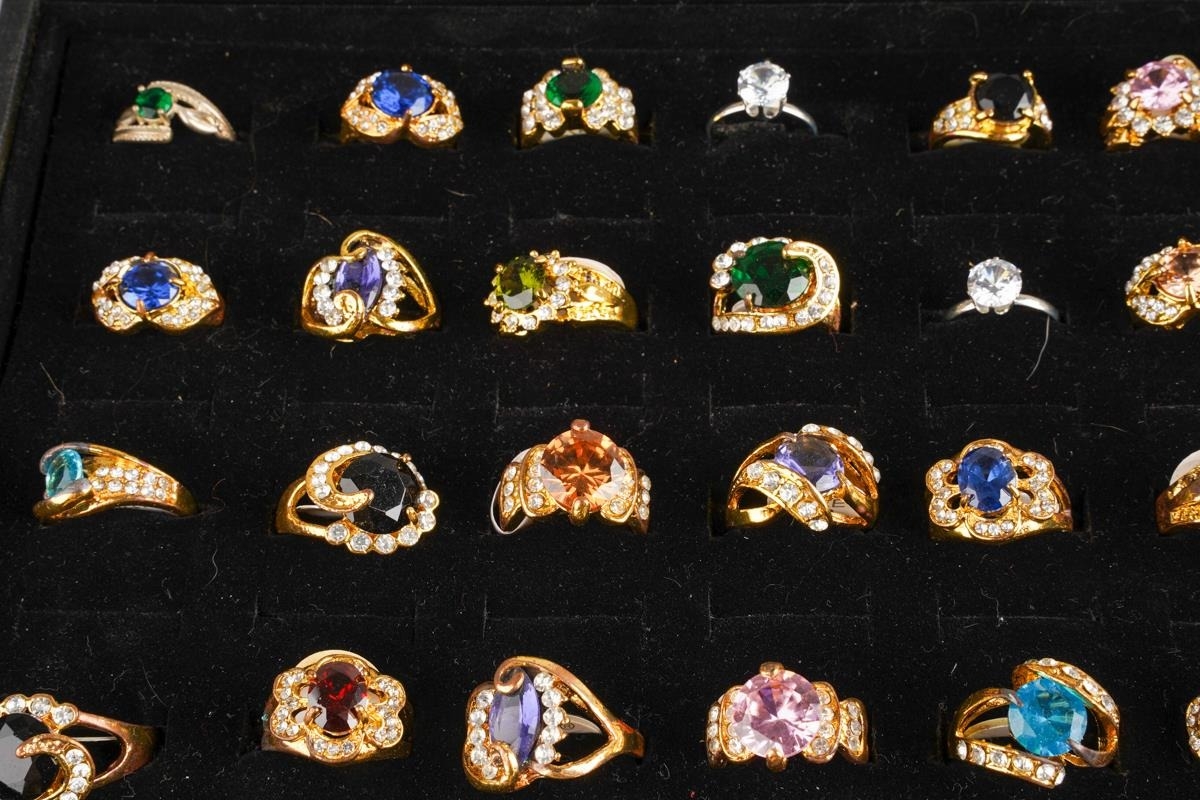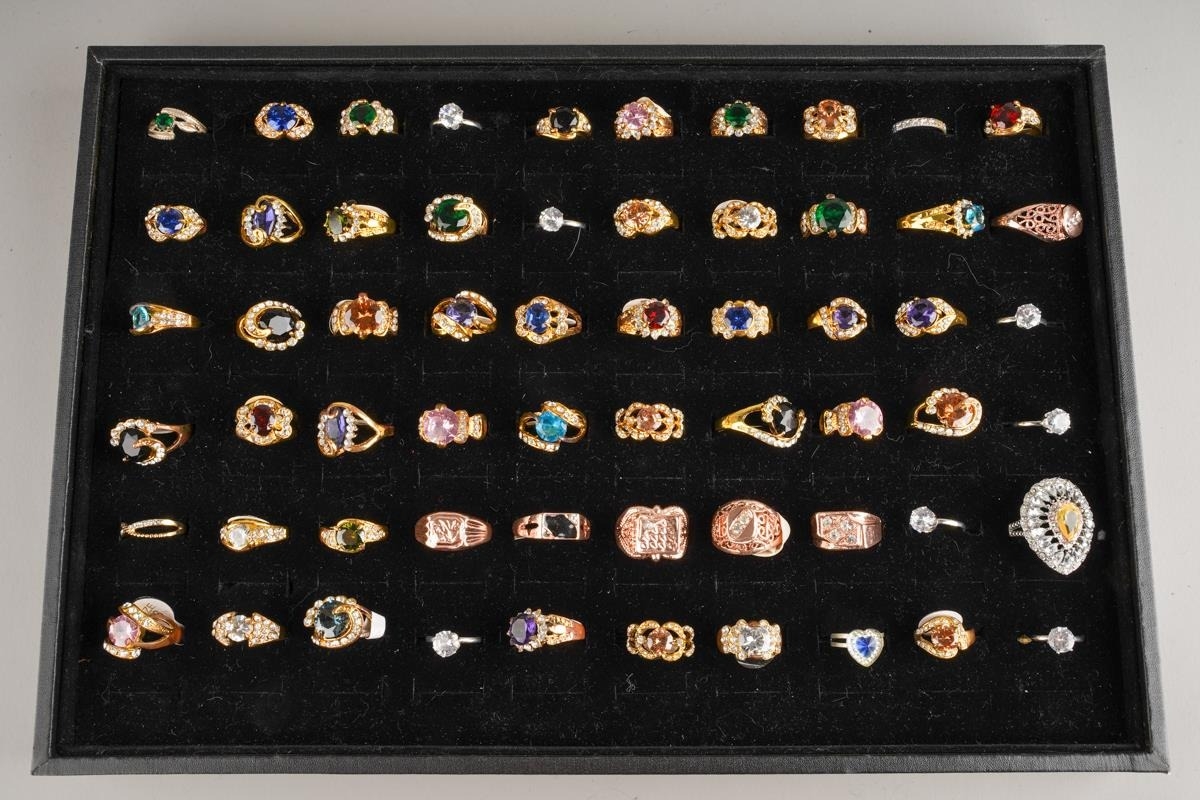Large collection of dress rings, various sizes and metals - including stainless steel, set with CZ and glass, approx. 60 in total