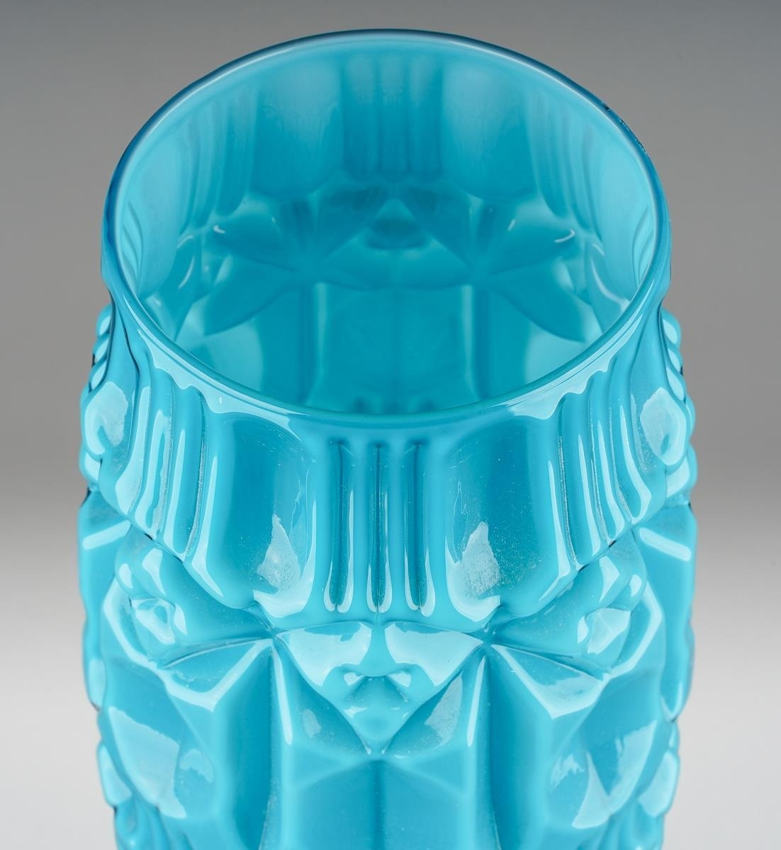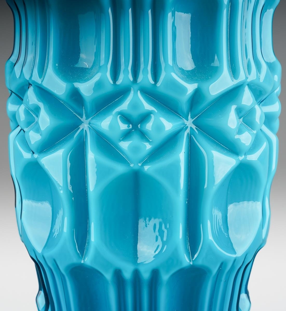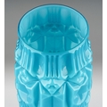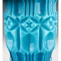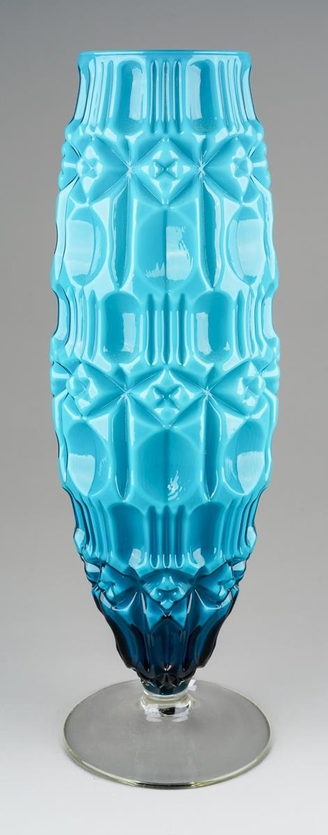 An Italian Empoli glass Tiki vase in turquoise, clear glass circular foot, height 47cm