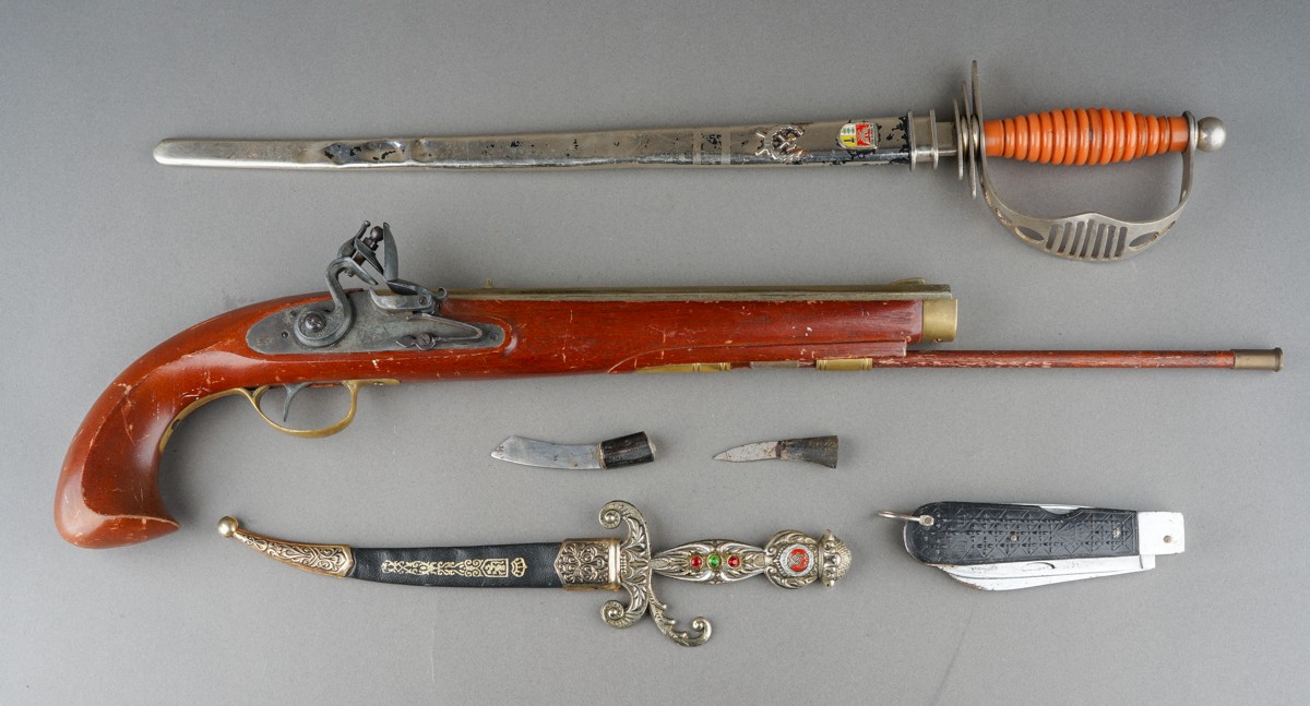 Replica Decorative Flintlock Pistol, Jack Knife, Spanish Dagger, etc.