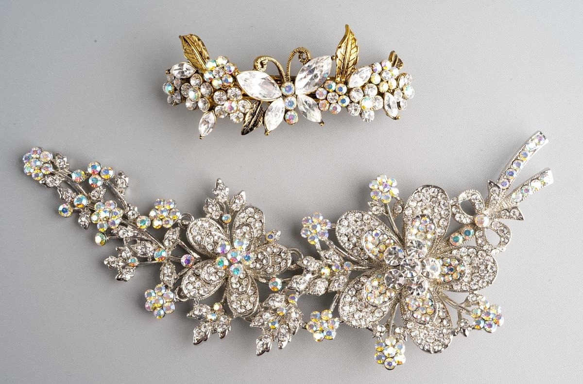 A large articulated diamante Butler & Wilson brooch and hair slide