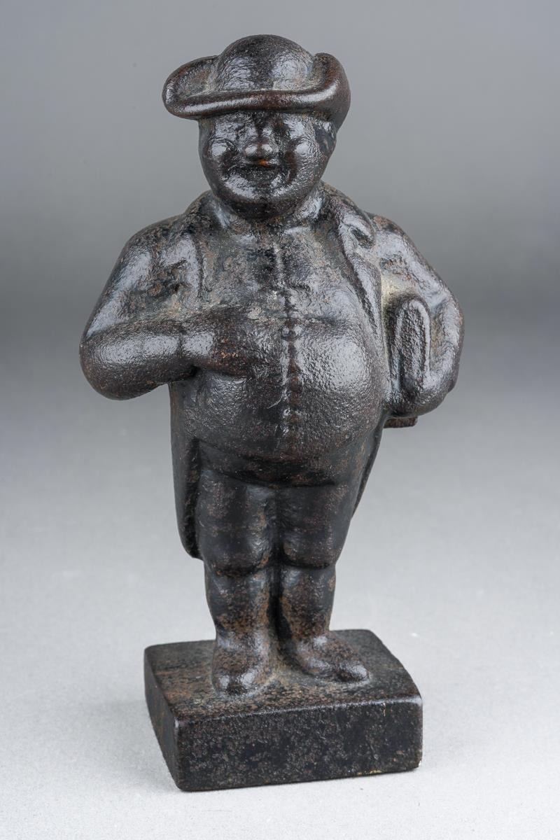 A late 19th Century cast iron paperweight modelled as Rev Joshua Brooks aka The Manchester Man, approx 14cm high [1]
